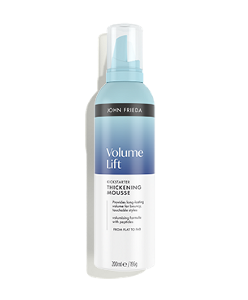 All volume, no crunch.This thickening mousse is formulated with Peptides to plump each strand for visible fullness with ultra-light body. Its strong hold formula locks in your style and shields against heat up to 230°C*, all while keeping hair bouncy and touchably soft. Tons of volume, none of the crunch.